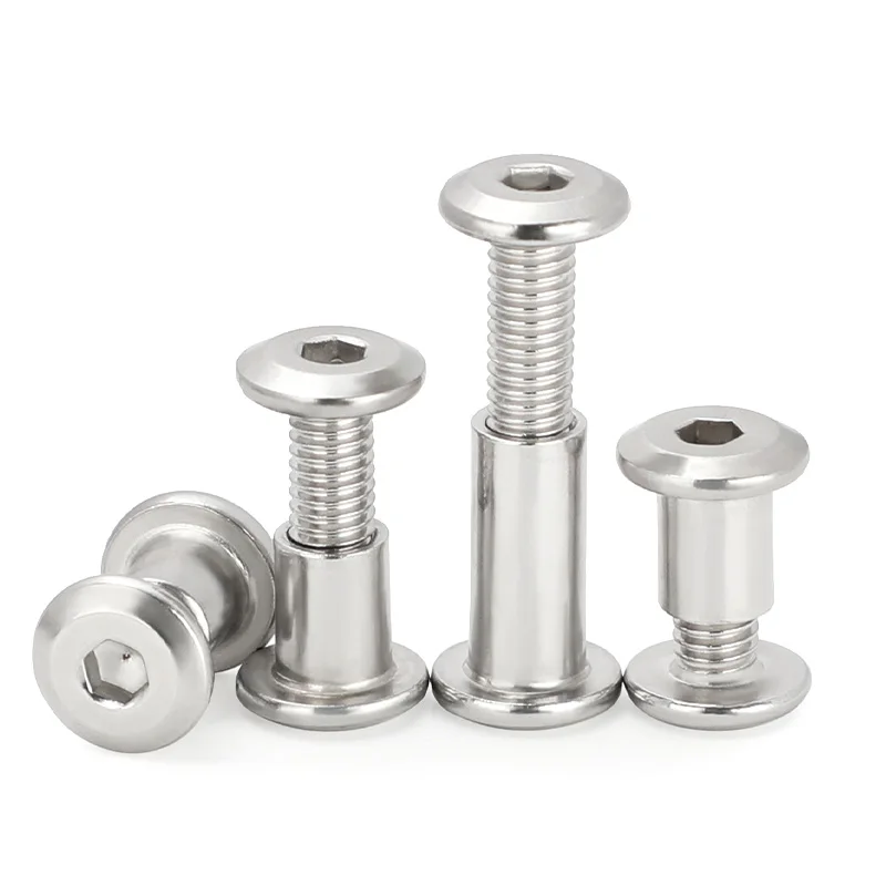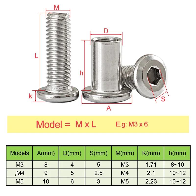10 Sets Stainless Steel Hexagon Socket Butt Screw M3 M4 M5 Furniture Bridge Screw Wooden Board Joint Screw & Cap Nut