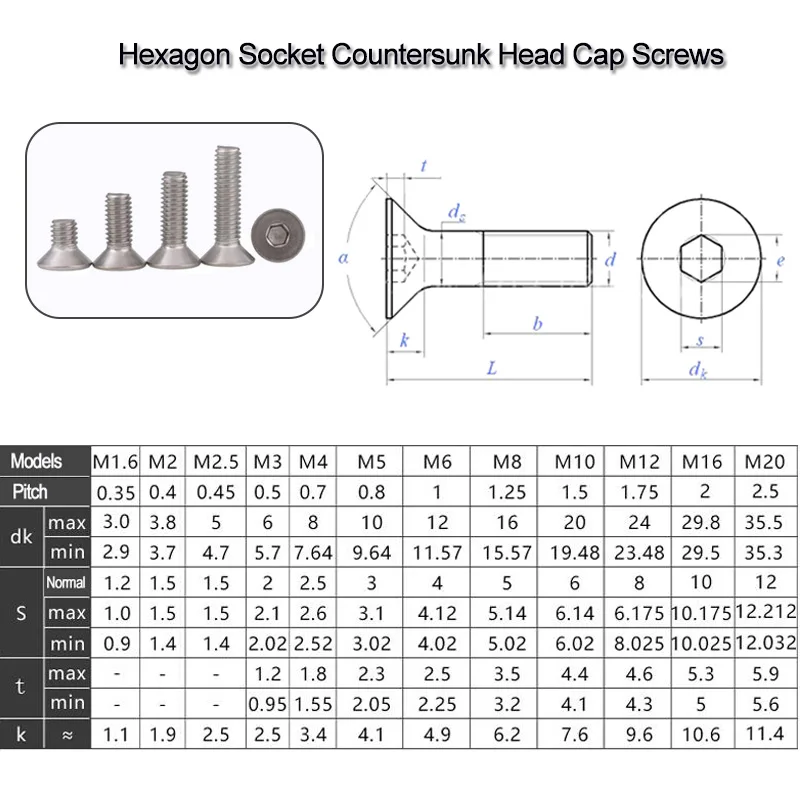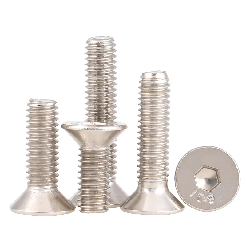 100 Pcs Stainless Steel M1.6 M2 M2.5 Hexagon Hex Socket Flat Head Countersunk Screw Nickel Plated Countersunk Bolt Grade 10.9