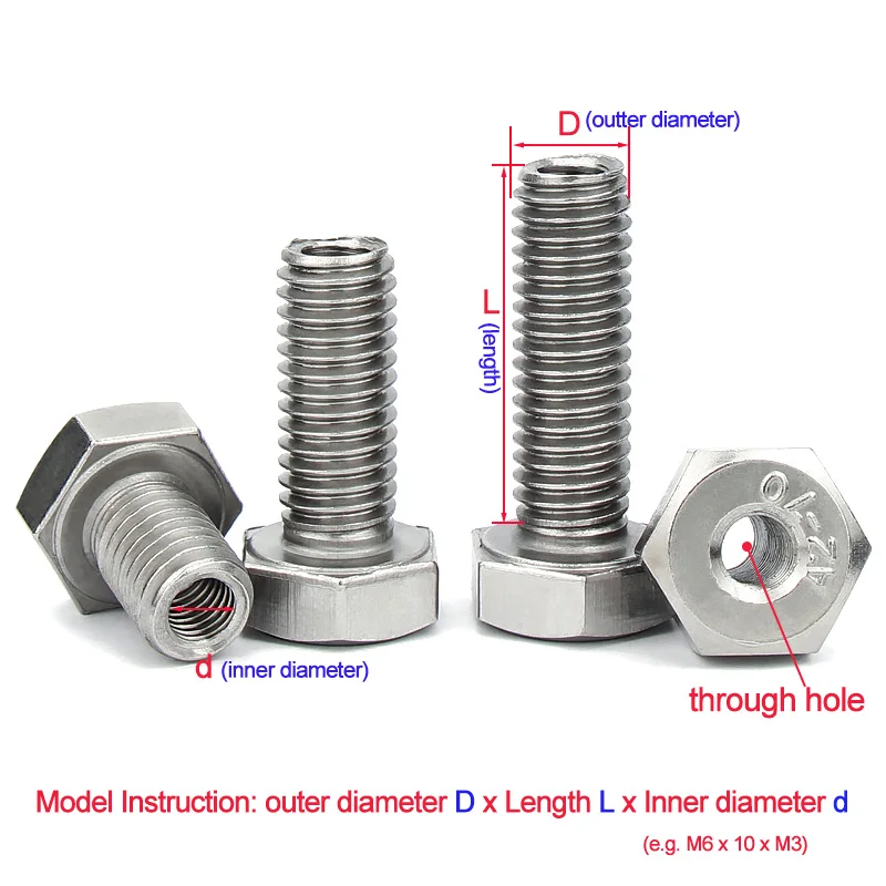 E.g. M6-10-M3 means male thread M6, female thread M3, thread length 10mm