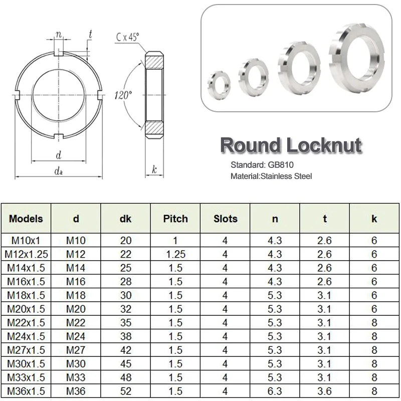 2PCS Stainless Steel Four Slots Round Locknut Small Antiloose Nut M10 12 14 16 18 20 22 24 27 30 33 36 GB810 Standard