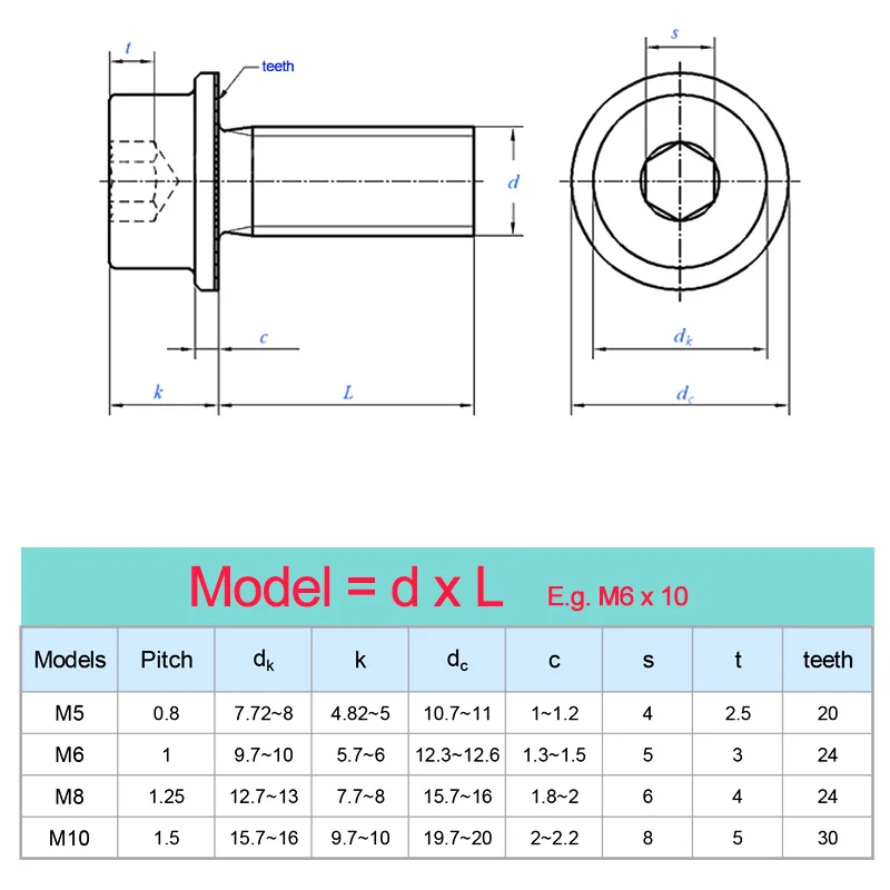 Xpcs Stainless Steel Hexagon Socket Head with Serrated Flange Screws M5 M6 M8 M10 M12 Anti-loose Hexagon Bolts Self-Lock Screws