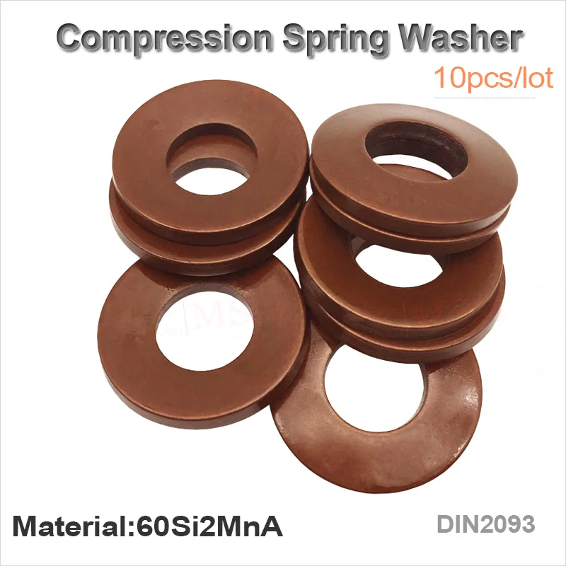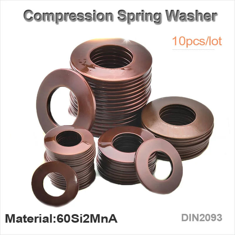 10pcs 60Si2MnA Belleville Style Compression Spring Washer Disc Spring Outer Dia 20/22.5/25/28/31.5/35.5/40/45mm Inner Dia 10.2-22.4mm Thickness 1.1-2.5mm