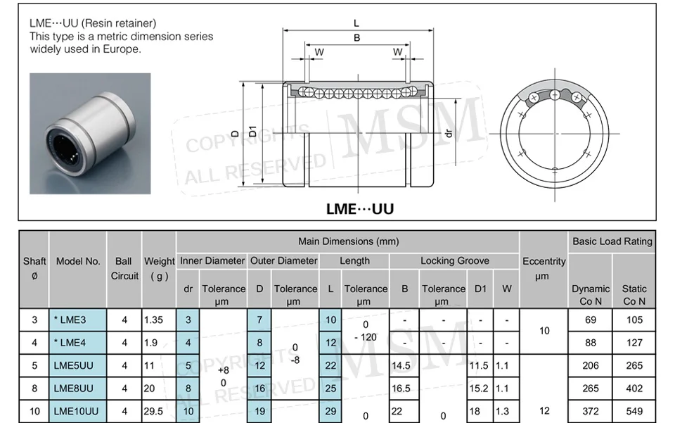 Item Name:Europe Standard Type Linear Bearing /LME...UU Series
