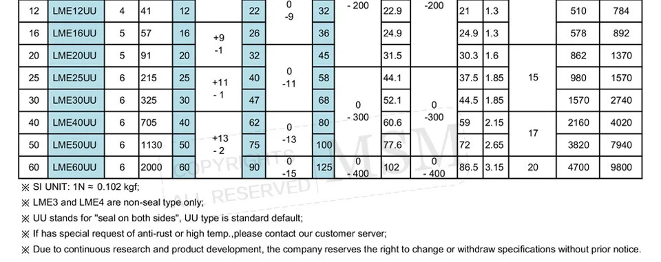 * For LME...UU type linear bearings, h6 tolerance linear shaft is recommended.